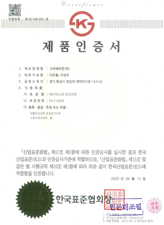 KS 제품 인증서